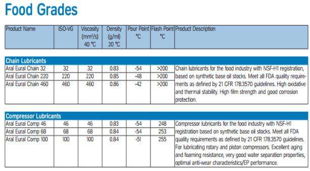 Aral Eural Chain 32Aral Eural Chain 220Aral Eural Chain 460食品級鏈條油NSF的H1的登記與食品產業鏈條潤滑劑,基於合成基礎油。符合FDA 1 CFR 178.3570質量要求為準則的定義。高氧化和熱穩定性。高膜強度和良好…… [了解更多]