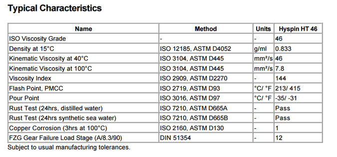 Hyspin HT 46超過DIN 51524 3部分的要求。