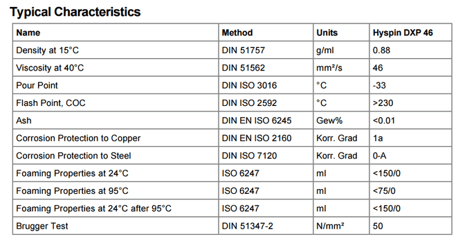 液壓油的類型和性能hlp-d符合DIN 51524-2要求。嘉實多海斯平DXP 46洗滌劑/