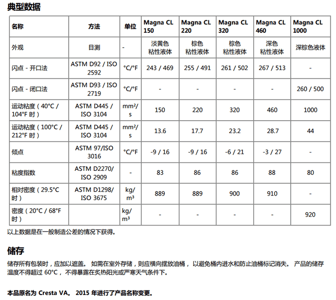 嘉實多Magna CL 係列(原名嘉實多 Cresta™ VA 係列和 Cresta™ SHS)由優質礦物基礎油調配而成,加入了摩擦和潤 滑改性劑以增加油膜強度並減小摩擦。