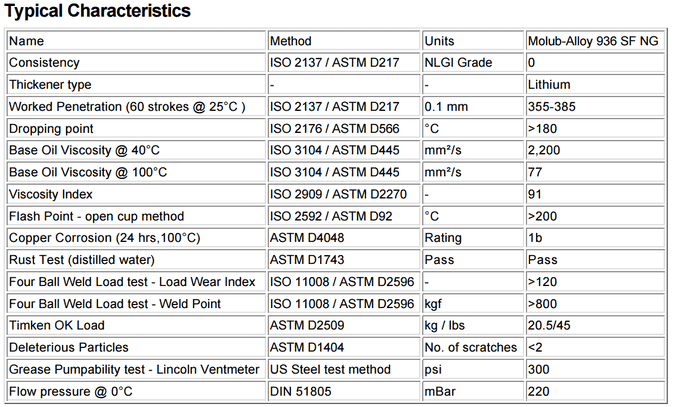 CASTROL MOLUB-ALLOY 936 SF NG形成堅韌,耐用的潤滑膜具有“緩衝”的效果,甚至