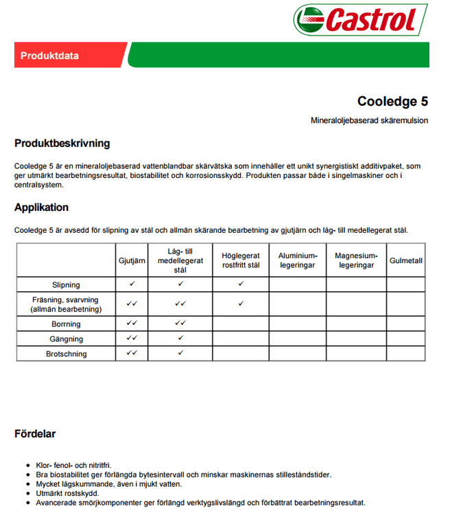 CastrolCooledge 5水溶性切削液… [了解更多]