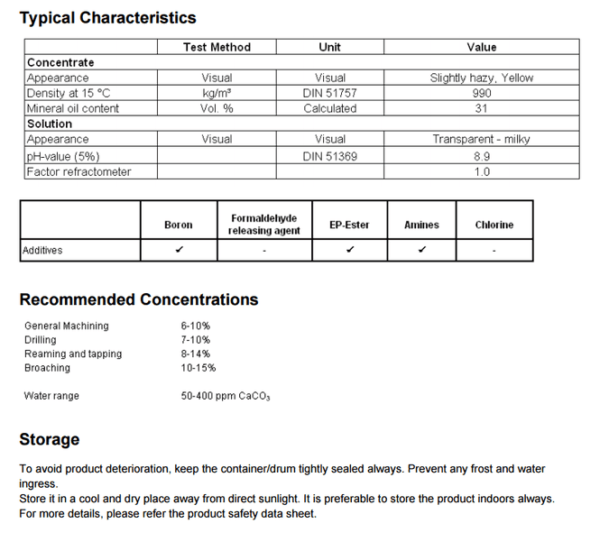 優良的潤濕性能減少冷卻劑拖出並提供清潔的機床和部件