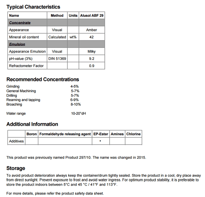 嘉實多alusol ABF 29(以前命名的產品297 / 10)是一種高性能的水溶性金屬加工液中的硼,