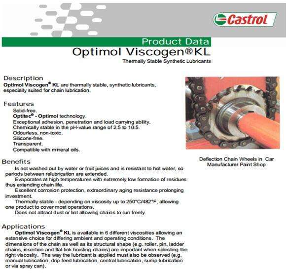 嘉實多Castrol Viscogen KL3 、KL9、KL15、KL23、KL130、KL300 高溫鏈條油