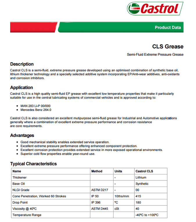 嘉實多CLS是一個高質量的半流體潤滑脂具有良好的低溫性能,使它特別
