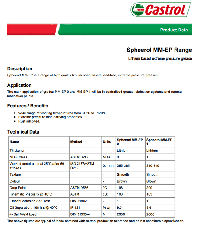 Castrol Spheerol MM-EP 0、MM-EP 1