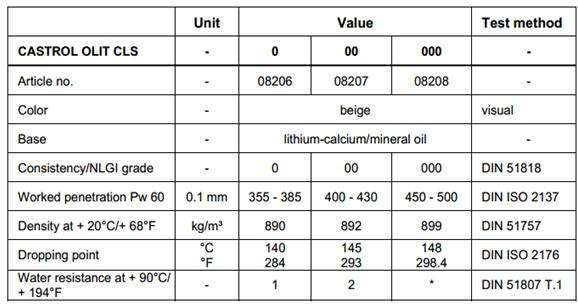 嘉實多Castrol OLIT CLS 0、CLS 00、CLS 000