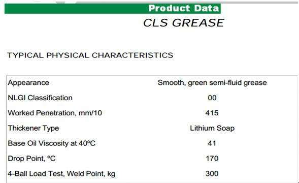 嘉實多CLS GREASE半流體極壓潤滑脂描述嘉實多CLS潤滑脂是基於礦物油和鋰皂稠化劑和采用防鏽、抗kang氧yang化hua和he抗kang磨mo和he極ji壓ya添tian加jia劑ji,提ti供gong了le出chu色se的de保bao護hu,對dui磨mo損sun的de軸zhou承cheng組zu件jian和he腐fu蝕shi。它ta是shi一yi種zhong膠jiao脂zhi,非fei常chang耐nai水shui洗xi,具ju有you良liang好hao的de性xing能neng和he低di溫wen性xing能neng。應ying用yong嘉jia實shi多duoCLS潤滑脂是一種半流體(NLGI 00)中使用的… [了解更多]