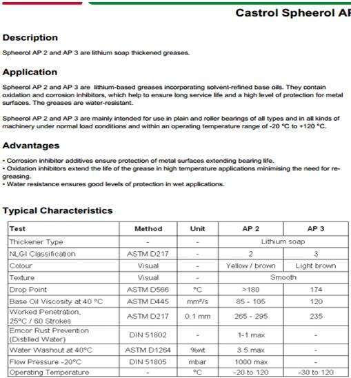 嘉實多Spheerol AP3|AP2潤滑脂是被推薦為優質通用潤滑脂,在所有平麵和反摩擦,例如軸承製