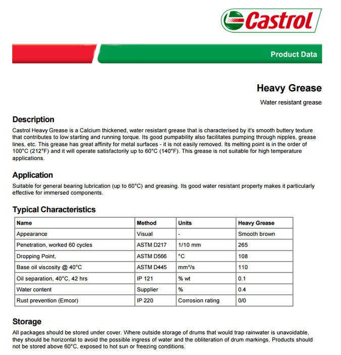 Castrol Grease 01Castrol Grease GP 3Castrol Heavy Grease抗(kang)水(shui)潤(run)滑(hua)脂(zhi)描(miao)述(shu)嘉(jia)實(shi)多(duo)潤(run)滑(hua)脂(zhi)是(shi)一(yi)種(zhong)鈣(gai)加(jia)厚(hou),耐(nai)水(shui)潤(run)滑(hua)脂(zhi),是(shi)由(you)它(ta)的(de)光(guang)滑(hua)的(de)奶(nai)油(you)質(zhi)地(di)有(you)助(zhu)於(yu)低(di)啟(qi)動(dong)和(he)運(yun)行(xing)轉(zhuan)矩(ju)。其(qi)良(liang)好(hao)的(de)泵(beng)送(song)性(xing)也(ye)有(you)利(li)於(yu)泵(beng)通(tong)過(guo)乳(ru)頭(tou),潤(run)滑(hua)脂(zhi)該(gai)潤(run)滑(hua)脂(zhi)對(dui)金(jin)屬(shu)表(biao)麵(mian)有(you)很(hen)大(da)的(de)親(qin)和(he)… [了解更多]