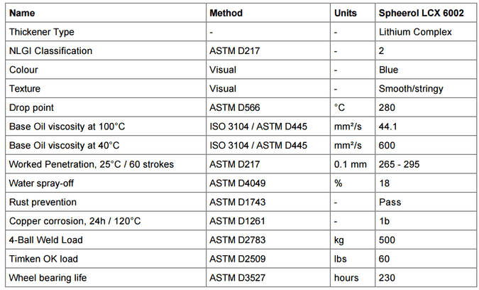 Spheerol LCX 6002是一個超級複合鋰基潤滑脂NLGI 2一致的。它采用了一個獨特的組合
