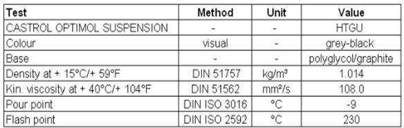 嘉實多Optimol Suspension HTGUOPTIMOL HTGU是半粘性特殊潤滑劑,含有固體。熱穩定合成基礎油蒸發溫度超過+200℃ / + 392°F幾乎沒有殘留物的形成。它形成與高負荷承載能力非常膠粘劑的固體潤滑膜。它非常適用於潤滑高溫度範圍可+ 650℃/ 12… [了解更多]