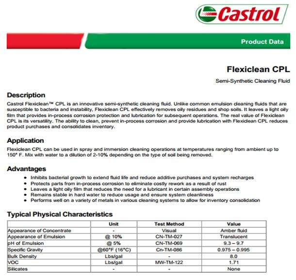 嘉實多Flexiclean CPL 半合成清洗液嘉實多CPL微乳清洗保護金屬部件半合成清洗液描述嘉實多lexiclean™CPL是一個創新的半合成清洗液。不同於常見的乳化清洗液,易受細菌和不穩定,flexiclean CPL有效去除油性殘留物和鋪土。它的葉子的光油,為後續操作提供… [了解更多]