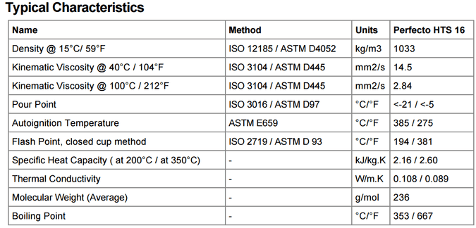 Perfecto HTS 16高溫合成導熱油。它具有比傳統的更高的熱穩定性