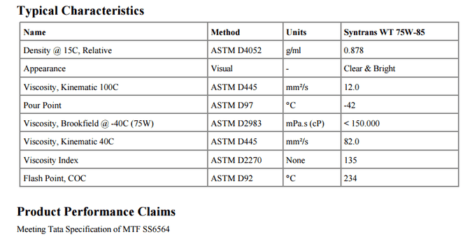 Castrol Syntrans WT 75W-85手動變速箱油描述Castrol Syntrans WT 75W-85是一部分合成手動變速箱油特別推薦塔塔手動變速箱在API GL-4潤滑油是必需的。優勢提供改進的同步器和齒輪變速箱的保護優良的氧化穩定性,確保在高溫和延長排水應用… [了解更多]