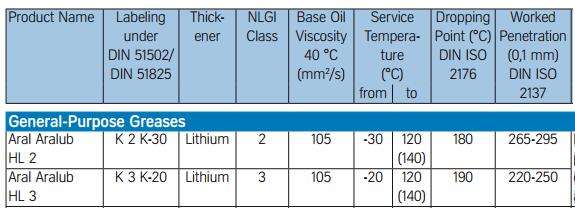 Aral Aralub FM 3Aral Aralub HL2Aral Aralub HL3礦物油基地和多用途潤滑脂明顯的機械和熱載荷摩擦和摩擦軸承的容量。好的耐老化和腐蝕保護。… [了解更多]