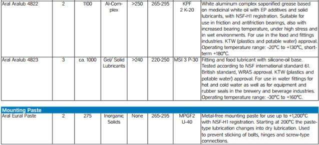 Aral Eural Grease EPF 2食品和飼料專用潤滑脂基於藥用白油nsfh1注冊行業。用於潤滑摩擦和抗摩擦軸承,包括增加軸承溫度,在高應力和潮濕的環境中。工作溫度範圍:- 0℃+ 140℃短期+ C180℃,Aral Eural Grease EP 1-2 SAral…… [了解更多]