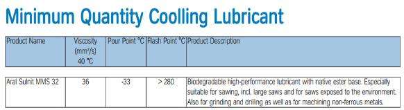 Aral Sulnit MMS 32生物降解潤滑油,天然酯具有高性能的基礎。特別是合適的鋸,包括鋸,鋸和大的環境暴露。研磨和鑽探的井,也為有色金屬的加工。… [了解更多]