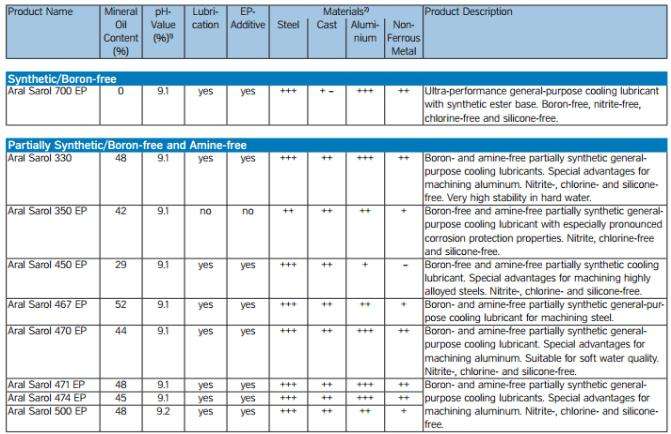 Aral Sarol 330 不含硼及胺的半合成泛用型冷卻潤滑油。特別適用 於鋼材及鋁材加工,有良好的耐硬水性。