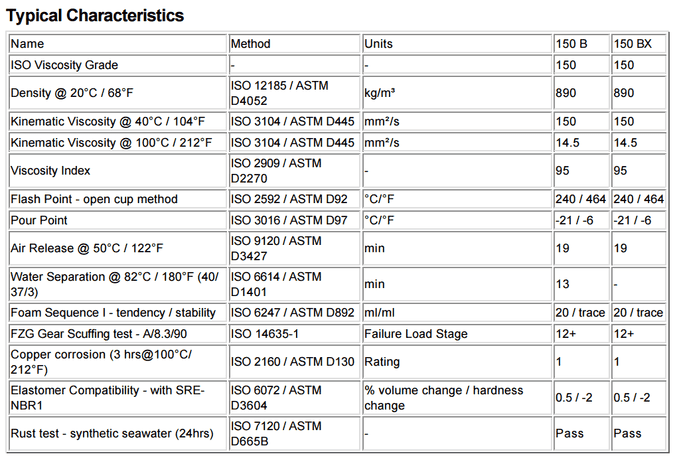 嘉實多LCG 150 B具有良好的破乳性能改進的水分離。