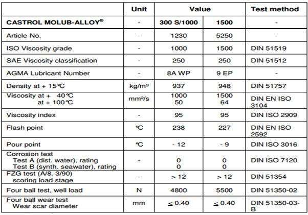 嘉實多Molub-Alloy 300S/1000、嘉實多Molub-Alloy 1500 齒輪油