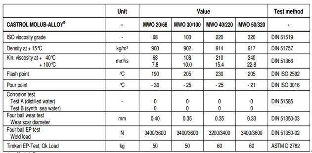 嘉實多MOLUB-ALLOY-MWO 20/68、MWO 30/100、MWO 30/220、MWO 30/320