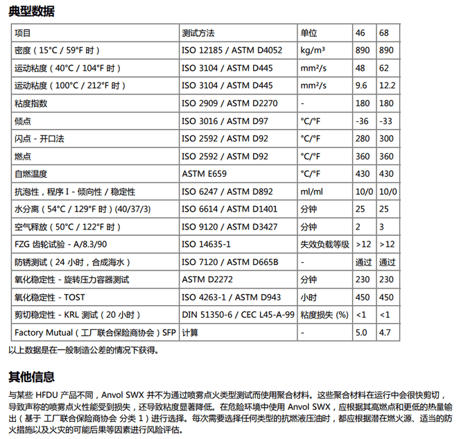 Anvol SWX 產品可提供安全的工作環境和更高的係統可靠性,是該類抗燃液壓油中 的傑出產品。