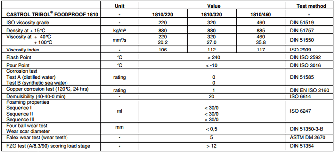 嘉實多optileb GT 1810/220(以前稱為賽寶foodproof 1810)食品機械齒輪油性能