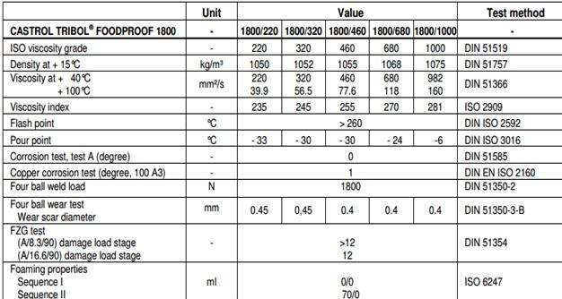 嘉實多Tribol FoodProof 1800/220、1800/320、1800/460、1800/680、1800/1000