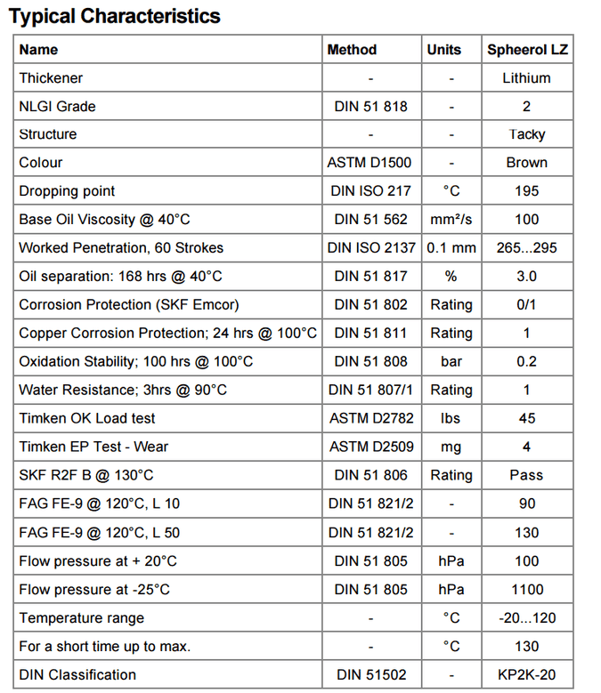 強度和高的機械和熱穩定性。spheerol包含精選的基礎油和鋰皂