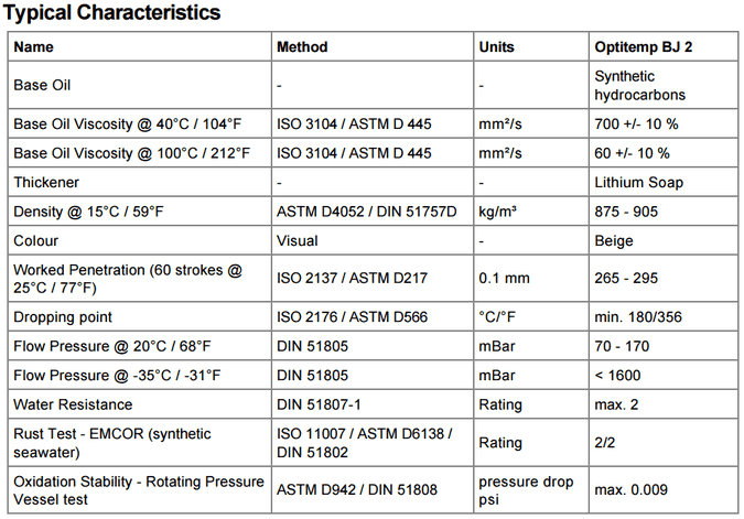 嘉實多optitemp BJ 2是一一全合成高性能鋰增稠的潤滑脂,具有優良的耐腐蝕