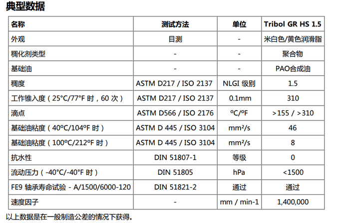 嘉實多 Tribol™ GR HS 1.5(原名嘉實多 Longtime™ HS 1.5)是一款合成高性能潤滑脂,基於創新的稠化劑技術。它具有 卓越的機械和剪切穩定性以及出色的抗水、抗潮濕和抗金屬加工液的特性。